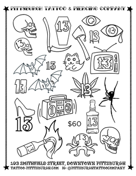All tattoo flash designs are currently available at Pittsburgh Tattoo & Piercing.